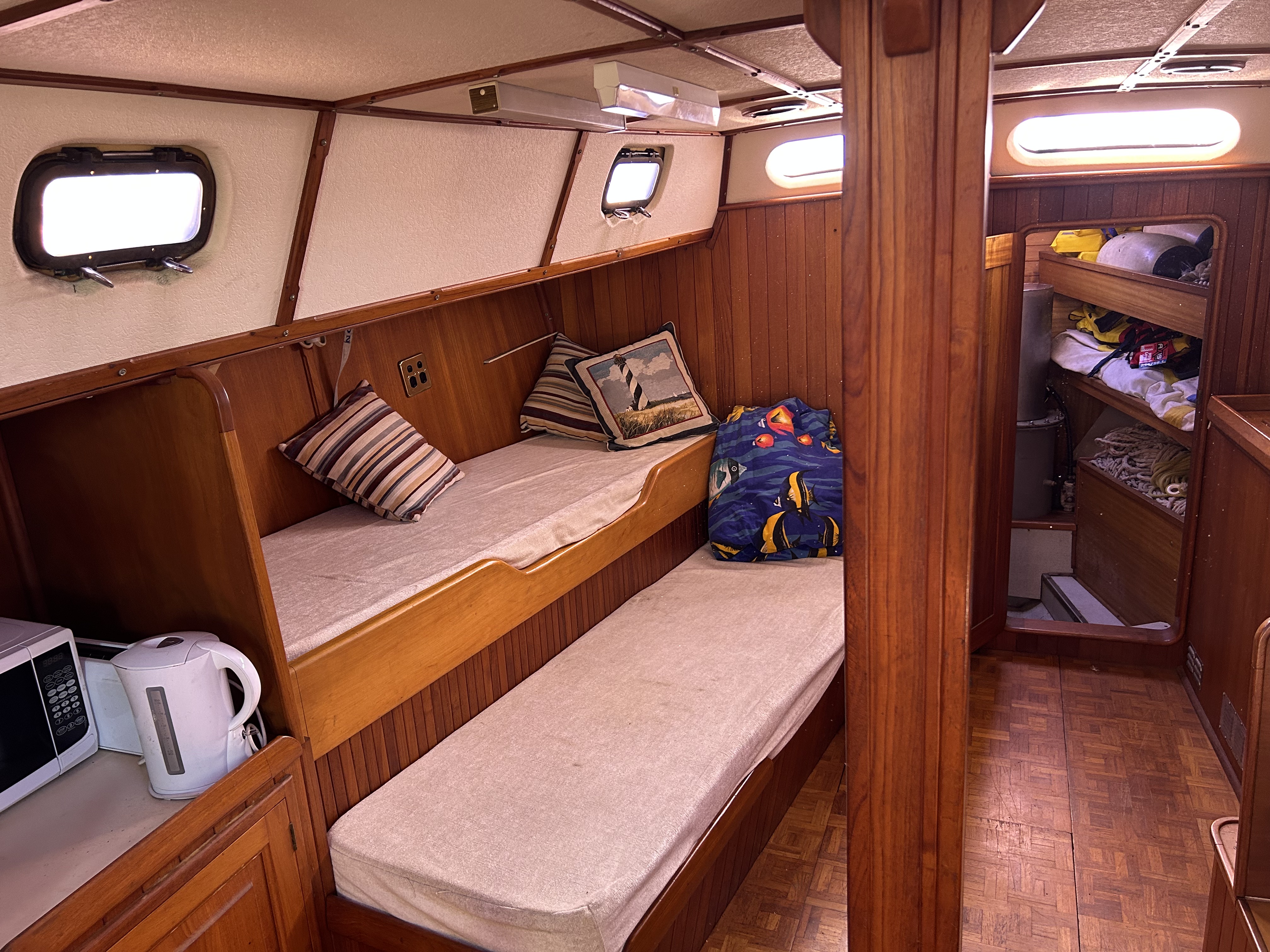 Centre cockpit semi-enclosed pilothouse* Dual steering stations. Aft cabin & Deck. Sleeps four* Spacious main saloon & Galley.